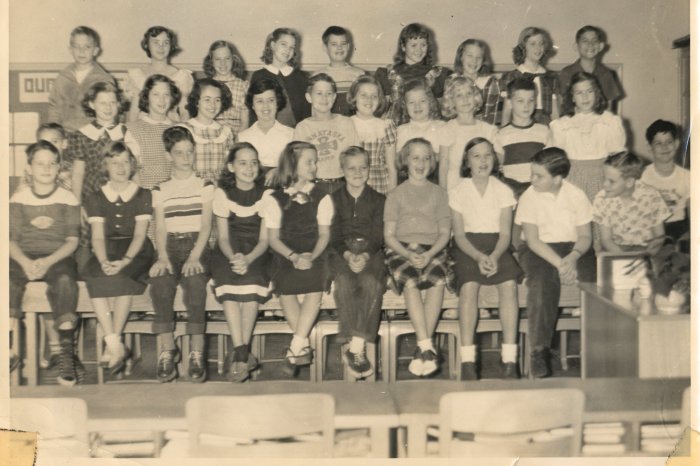 Below: Class photo from maybe 4th grade. M.D. Smith (white shirt and next to Jeanie Walters) looking toward the center and on the left end is Charles Gaines, who transferred to BUS, but stayed in touch with all of us.